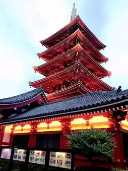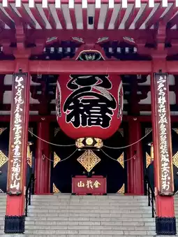 ✨️ Its symbol is a large red lantern hanging at the temple gate, with the kanji characters Kaminari-Mon, which means "Thunder Gate." Since it is located in the Asakusa area, everyone also calls this temple Asakusa Temple.