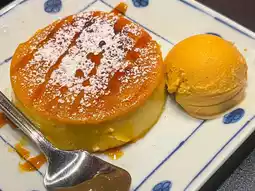 - Salad + Tofu Soup + Cream Soda + Hokkaido Milk Crème Brûlée with Caramel Ice Cream (530 Yen)