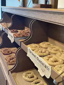 There are so many alkaline knot flavors it's hard to choose! Both savory and sweet options are available. I recommend heating the savory ones in the small oven inside the store~ The "Butter Pepper" flavor is a must-try! The surface is sprinkled with finely crushed pepper, and biting into it reveals a soft yet chewy dough. The buttery aroma mixed with a hint of sweetness is completely non-greasy~ The "Tiramisu" flavor is full of surprises, topped with a thick layer of cocoa powder and filled with mascarpone cream. Remember to hold your breath while eating (the cocoa powder really floats up!)🍫