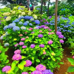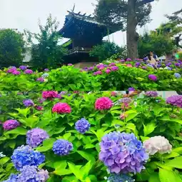 About a 7-minute walk from Hon-Komagome Station on the Tokyo Metro Namboku Line. Hakusan Park attracts many visitors with approximately 3,000 hydrangea bushes in full bloom. Hydrangea season: early June to mid-June. Many hydrangeas are already blooming, and it looks like they will be in full bloom soon. The colors are rich and varied, including red, blue, white, and even bicolor combinations. Very beautiful.