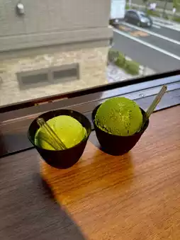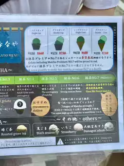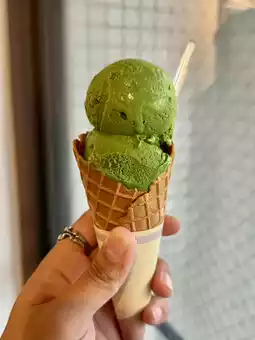 A matcha gelato or 7-level matcha ice cream shop, a famous spot in Asakusa that has been in business for over 100 years.