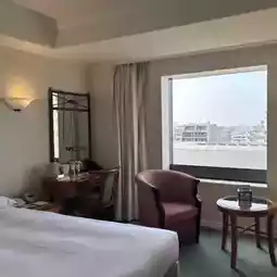 The hotel has a restaurant, lounge, gym, sauna, large public bath, and pool.