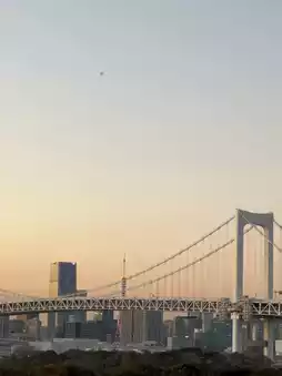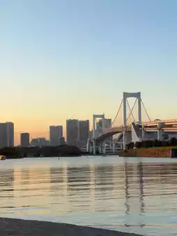 🌉 At Odaiba Seaside Park, you can take in the Rainbow Bridge, Tokyo Tower, and the 🗽mini Statue of Liberty all at once, making it a famous photo spot📸