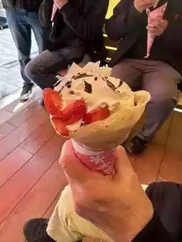 I started from JR Harajuku Station, stepping out right onto Takeshita Street. It’s a street always bustling with voices, as colorful as a candy world. Whether it’s girls dressed in Gothic Lolita or Korean trendy guys holding selfie sticks, everyone naturally belongs to this free-spirited street. I bought a strawberry fresh cream crepe and ate it standing among the crowd, feeling no awkwardness at all, as if this place exists for everyone to “be themselves.”