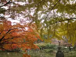 Located in Chiyoda Ward, Tokyo’s Hibiya Park is a historic Western-style urban park adjacent to the Imperial Palace and Ginza. It is conveniently accessible within a 1 to 3-minute walk from Hibiya or Yurakucho subway stations. The best time to see the autumn foliage here is from mid-November to early December, when the ginkgo and maple trees throughout the park turn golden yellow and bright red. The most spectacular views are around Shinji Pond and near the Crane Fountain, where the water reflects the autumn colors like a picturesque painting.