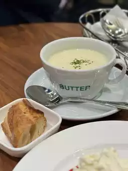 The moment you step in, you’ll spot staff churning fresh butter behind the counter — a fun, artisanal touch that sets the mood for what’s to come. You can even buy the butter to take home, making it the perfect edible souvenir.