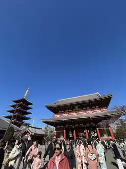 Today’s a chill trip, not too early. We’ll start around 9 AM and head to 📍Sensoji Temple, the iconic landmark of Asakusa. Walk through the Kaminarimon Gate with its huge, iconic red lantern.