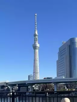 Next, we’ll walk to 📍Sumida Park, which isn’t far from the temple. Sumida Park is a public park stretching along the Sumida River, with a wide riverside walkway. The view across the river features the Tokyo Skytree, standing tall and clear as far as the eye can see.