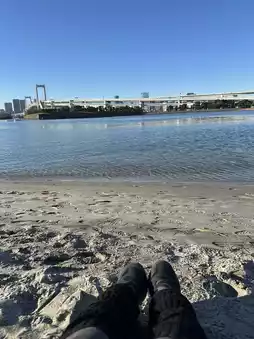 I sat by the seaside for about 20 minutes, eating while watching the sea and people,
