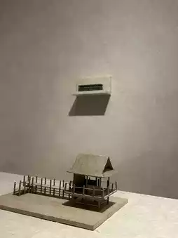 The "hidden spots" he cherishes as "good places not yet known to people" are scenes, buildings, and vehicles that we see in daily life but tend to overlook. His "architectural sculptures" emphasize the textures of wood and Japanese paper, maintaining a quietly charming presence.
