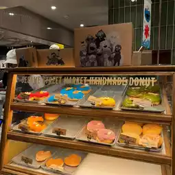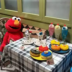 Let's go to Sesame Street Cafe 🍩✨ Yesterday, Bew reviewed Sesame Street Market. Right next to it, there's also a cafe‼️ It's so cute that I almost don't want to eat it🥹 As for what Bew ordered, it was Elmo-shaped donuts❤️ in Raspberry flavor and Cookies Monster💙 shaped donuts in Sugar flavor 🍩 priced at 520¥ each. For the drink, Bew ordered peach soda 🍑 even though I don't like peach at all 55555, but I ordered it just because of the color and Abby design, priced at 950¥😂 Actually, both the donuts and drinks come in other characters and flavors too. For example, Oscar-shaped donuts are Matcha flavor, and Lemon Soda is BigBird (I'll post the menu in the comments). Whoever likes any character or color, or wants to order any flavor for content, feel free🤏🏻