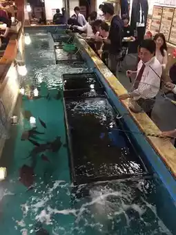 When you come to Shinjuku, there are two experiences I highly recommend. One is live fish—you can catch, kill, and eat it yourself, with various preparation methods to choose from. It’s a super cool experience. Remember, don’t release the fish after catching it; you have to pay once you catch it.