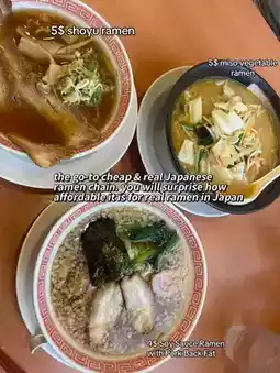This local ramen chain is everywhere across Japan — and it’s famous for one thing: ridiculously cheap, real Japanese ramen. We’re talking full bowls of shoyu (soy sauce), miso, or pork ramen for around ¥760 (just $5 USD!).