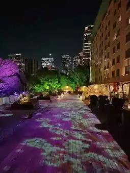 Tower View Terrace (Cafe & Bar): Night views of Tokyo Tower with projection mapping effects