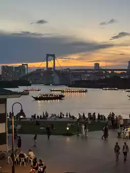 Walking through Odaiba felt like entering a sci-fi version of NYC. You’ve got the Statue of Liberty, a glowing skyline, rainbow bridge views, and a life-sized Unicorn Gundam just casually guarding the plaza 🤖. The vibe here is both modern and cinematic—perfect for sunset photos, shopping, and chilling by the waterfront. It’s Tokyo’s most photogenic escape with big city energy and futuristic flair.