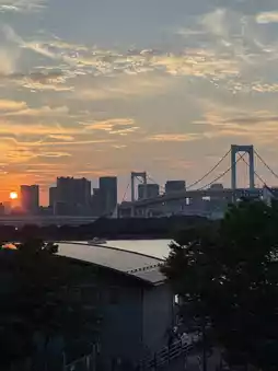 The spectacular and beautiful cable-stayed Rainbow Bridge is about 800 meters long. At night, the bridge lights twinkle and shine, making it one of Tokyo’s classic nighttime landmarks.