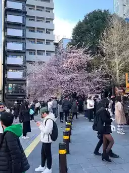 This is Ueno, a popular shopping spot among tourists. The cherry blossom viewing area is at the back. According to the forecast, it is one of the first places in Tokyo where cherry blossoms bloom before anywhere else.