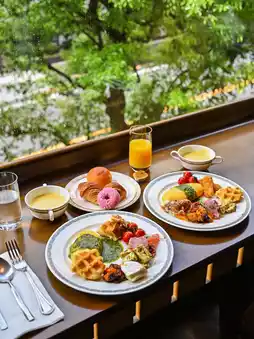 Breakfast is served buffet style, and the omelets made by the chef right in front of you are not only beautiful to look at but also fluffy and very delicious🤤