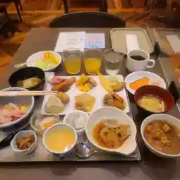 Breakfast lives up to its fame, offering a wide variety of dishes including a generous sashimi spread from early morning. I went down around 6:40 AM and recommend going early.