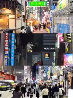 Must-visit check-in points: Giant 3D Cat, the building with Godzilla (located near Don Quijote, you can pin it on the map).