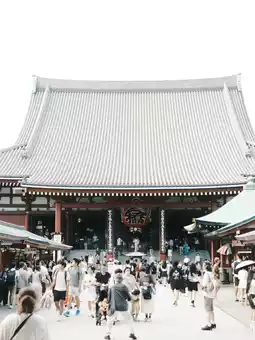 Pass through the striking Kaminarimon gate that stands out even from the street, walk through the bustling Nakamise shopping street lined with various shops on both sides filled with many tourists, and you will arrive at the main hall of Senso-ji Temple.