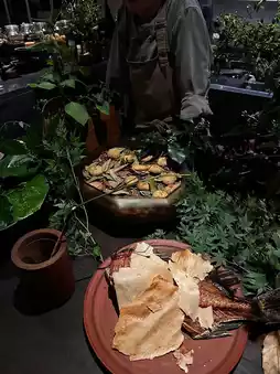 The specialty is "fire cooking" — all dishes are slowly cooked over a wood fire. There are no complicated seasonings, yet the original freshness and flavor of the ingredients are brought out to the fullest. The dining pace is slow, and each dish feels like a ritual of communicating with nature.