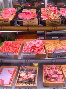You can dine for 100 minutes and order via QR code. Appetizers, vegetables, and drinks can be ordered by pressing a button. For the meat, you have to go and choose at a machine. To choose your cut, simply state the meat number and specify which cut you want.