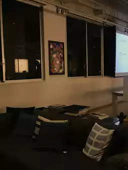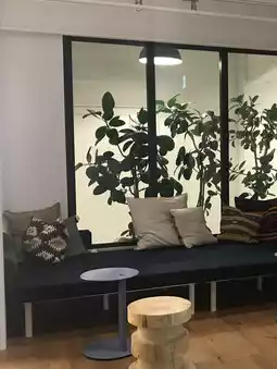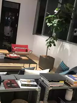 The surrounding area is dotted with shared workspaces, cafes, and contemporary art galleries,