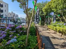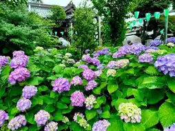 Hakusan Shrine is a well-known location for hydrangea viewing in Tokyo. Situated near Tokyo Dome, it is one of Tokyo's historic shrines and part of the "Tokyo Ten Shrines" that preserve traditional rituals. Every June, the shrine and the adjacent Hakusan Park become a spectacle with approximately 3,000 blooming hydrangeas, attracting numerous visitors.