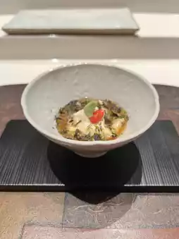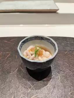 ○ Main Dish: White Shrimp and Salmon Roe with Kelp Broth, Toyama White Shrimp and Salmon Roe, Hairy Crab, Steamed Abalone, Chawanmushi