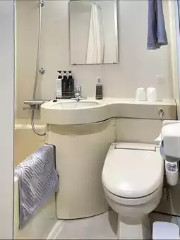 📍Olympic Inn Kanda meets all the standards. It's clean and well-equipped with all the amenities you need, including a kettle, heater, air conditioning, shampoo and conditioner, hair dryer, refrigerator, toilet with bidet, and TV.
