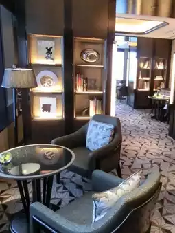 The exclusive lounge offers five daily food presentations, including afternoon tea and cocktail hour. A "hotel within a hotel" experience.