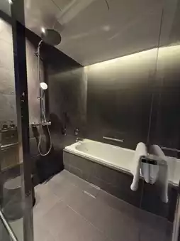 🛏️ The guest rooms feature a sophisticated modern design infused with subtle elements of Japanese aesthetics. Partitions reminiscent of shoji screens, soft ambient lighting, and expansive windows showcasing stunning views create a serene atmosphere. Sink into the bed, and you'll feel as if you're floating in the sky. The bathrooms are equipped with deep bathtubs and rain showers, offering a gentle respite from the fatigue of travel.