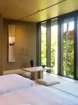 The guest rooms are a harmonious blend of warm wood tones and refined minimalism. Soft light filters through shoji screens, the scent of hinoki wood fills the bathroom, and serene forest views await outside the window🌲