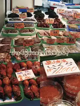 Besides seafood, there are also shops selling raw fish, sliced fish, and salmon roe. Simply put, this place is a paradise for Japanese food lovers. Prices are much cheaper than shopping in department stores.