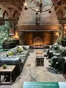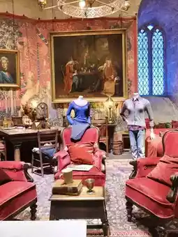 There are also re-enactments of various scenes, including the Gryffindor and Slytherin common rooms, the Room of Requirement, Professor Albus Dumbledore's office, Professor Snape's Potions class, Defense Against the Dark Arts class, the Forbidden Forest, Hagrid's house, No. 4 Privet Drive, Platform 9 3/4, the Hogwarts Train, Diagon Alley, and Hogwarts Castle.