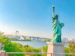 Beyond shopping and entertainment, Odaiba's charm lies in its seaside views. The promenade along the bay offers views of Rainbow Bridge and a replica of the Statue of Liberty, creating a truly international atmosphere. The evening sun reflecting off the water and the bridge's lights are especially romantic and impressive.