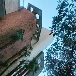 📸 The building in the photo features a distinctive design combining red brick-style walls with geometric decorations. It's a photogenic spot that makes you want to pause, look up, and snap a picture amidst the high-rise cityscape.