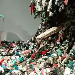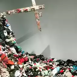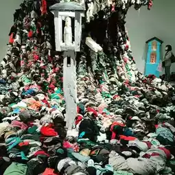 • The exhibition's new installation, "Doomsday," forms a giant wave made of over three tons of clothing, with a small chapel and sculptures installed within. The artist states, "The giant wave suggests the destruction caused by mass consumption and the unstoppable nature of capitalist society itself." The small chapel can also be interpreted as a symbol of powerlessness and, at times, the remaining hope of salvation.
