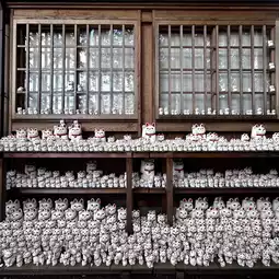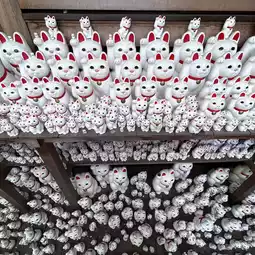 Beyond the main temple hall, you'll find dedicated shelves housing thousands of white maneki-neko figurines. This isn't a kitschy display; it's a solemn collection where visitors leave a cat as a token of gratitude for answered prayers. The sheer scale is awe-inspiring and creates a uniquely tranquil atmosphere.