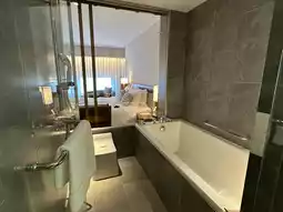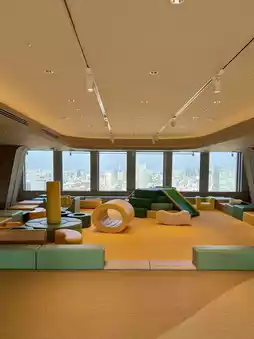 The upper-floor lounge, located right in front of the Tokyo Metropolitan Government's projection mapping, was spacious and provided a relaxing atmosphere.
