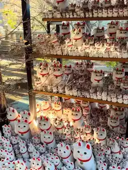 Countless Maneki-neko cats are enshrined within the temple grounds, creating a truly breathtaking sight! It's truly a great photo spot.