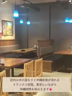 The interior is relaxing, with the warmth of wood and Okinawan music playing. You can experience Okinawan time without leaving Tokyo. 🌺