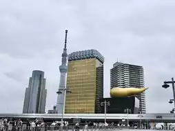 🍺 Asahi Beer Headquarters, the headquarters of Asahi Beer, features a striking architecture resembling a golden beer mug. The adjacent building, Super Dry Hall, resembles a golden flame on its roof.