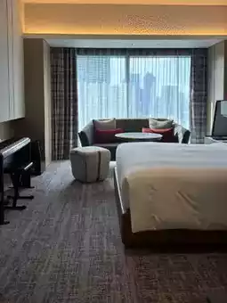 The large windows provide sweeping views of Tokyo Bay and the cityscape, offering completely different atmospheres during the day and night. The rooms feature unique touches like an electronic piano and original fragrances, making the time spent indoors truly special. The beds are incredibly comfortable, ensuring a deep and restful sleep.