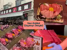 🐟 Moving on to the raw fish dishes, we're at Maguroya Kurogin, a renowned tuna restaurant that many consider top-rated. There are always long lines, and the fish is fresh and of high quality. For first-timers, we recommend trying the set menu, which includes akami, chutoro, and otoro.