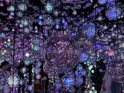 Touch and move elements in the main hall for dazzling light trails. Discover the tranquil Forest of Resonating Lamps, and chase butterflies in the En Tea House for a sip paired with digital magic.