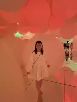 Finally, we visited the Floating Flower Universe Room. This 360° space is filled with digital flowers floating and disappearing around you. The flowers change with the seasons and react to your movements, making you feel like you're in a dreamlike garden in the middle of the universe.