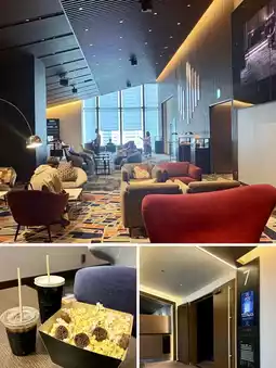 The lounge is directly connected to the theater, and the lights dimmed briefly to let you know when it was time to enter. 😌