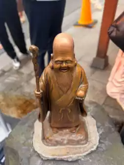 When it comes to money laundering, they actually launder money. The money laundering well, guarded by a statue of the deity, is a popular spot. Money is placed on a sieve, rinsed with well water, dried, and placed back in a wallet as a money shrine. It's said to increase financial and financial luck. The long lines daily offer a good indication of its effectiveness. There's also a statue of Fukurokuju (Fukurokuju) here. Don't forget to touch his head after your visit, and let his kind smile bring you good fortune.